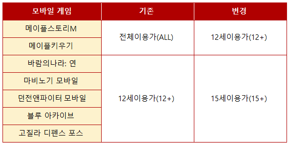 한국에서 서비스 중인 모바일 게임의 앱스토어 이용 가능 연령 등급이 변경될 예정에 있어 용사님들께 안내 드립니다.